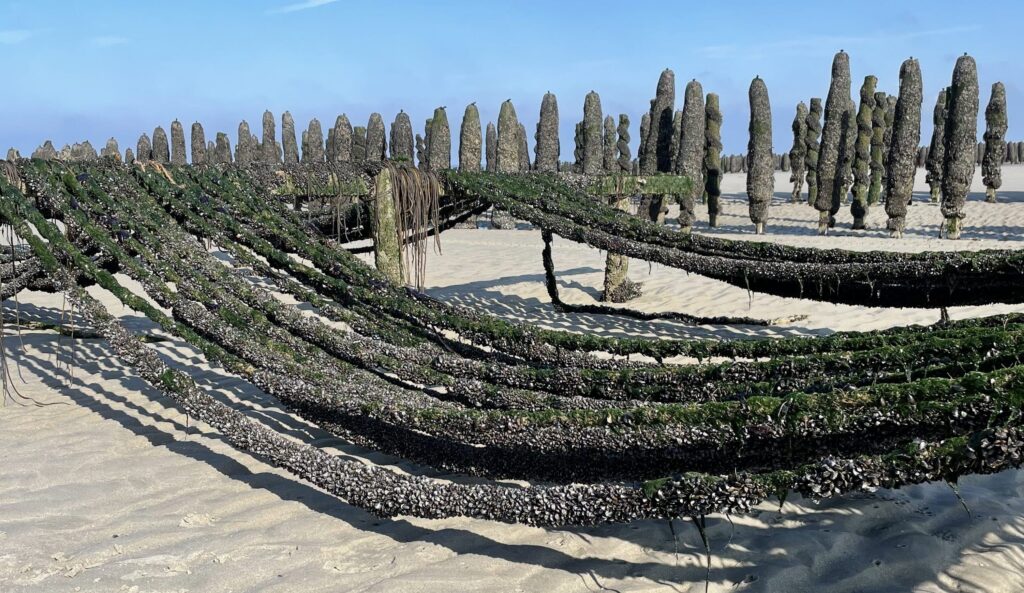 Une autre méthode, la culture sur filières, consiste à élever les moules sur des cordes suspendues. Les moules sont constamment immergées, favorisant ainsi une croissance plus rapide et une chair plus charnue.