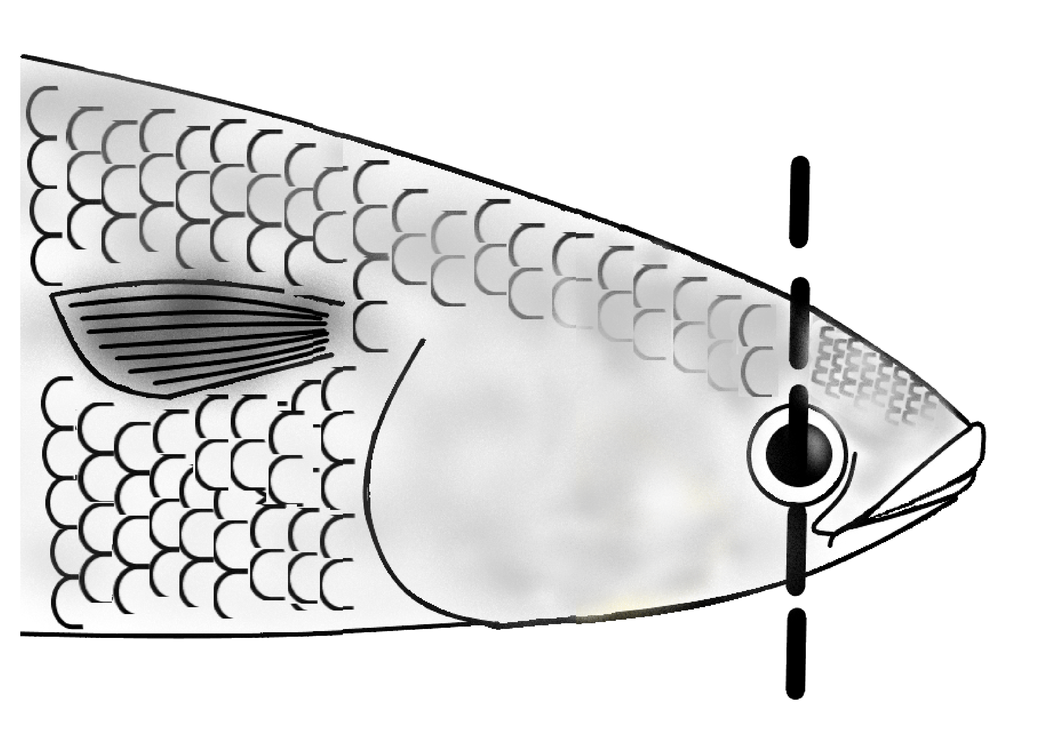 Quant au mulet sauteur, les écailles présentes sur son museau sont plus petites que celles sur le reste du corps.