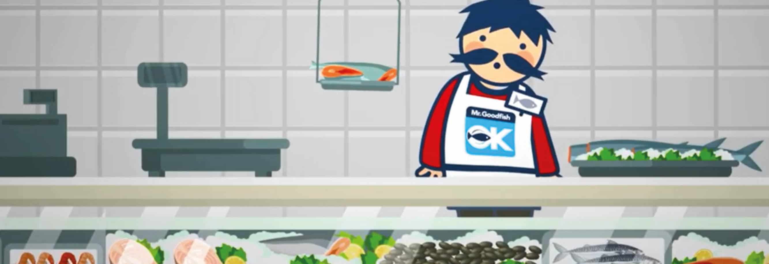 Pour garder un aspect dynamique, la vidéo de présentation du programme est une version animée de la mascotte « Mr.Goodfish ». Dans différentes scènes, le consommateur, le poissonnier, le pêcheur et le restaurateur se succèdent pour expliquer simplement la démarche et les différents critères pêche et aquaculture. Ce format de vidéo convient très bien aux diffusions sur les réseaux sociaux et pourra être utilisée dans les établissements des adhérents.